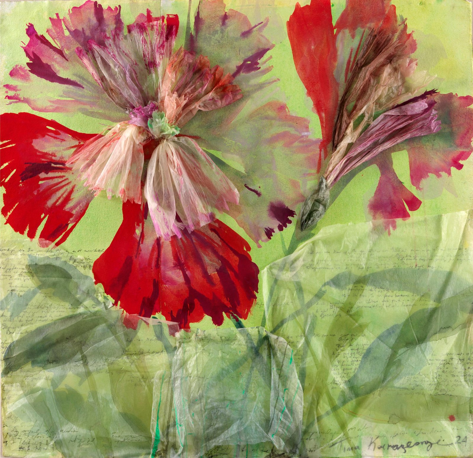 She has realized 14 personal exhibitions ( 1989, 1993, 2006 Nees Morfes – Athens,2007 Red Gallery – Athens and 2006 Tenri Institute Soho New York ,2007 PICI Gallery Seoul Korea , 2008 Griechische Kultrstiftung Berlin Germany, 2015 Alatca Imaret Thessaloniki, 2016 MUSEUM OF Greek Folk Art- Athens) and has participated in many group exhibitions in Greece and abroad ( last three 2008 MOCA Shanghai “Material Bonds, 2009 International Women’s Biennale Incheon Korea and Tracing Istanbul 2010- Istanbul).In 2013 she represented Greece at the Triennale of Lutz in Poland, in 2014 at the International Art Fair Zurich, in 2014 at the International Art Fair Korea. Many of her works belong to private collections in Greece and abroad. Recently the National Bank of Greece added two of Karageorgi’s works to their collection. Tina Karageorgi is an artist of Martix Art Advisory & Residencies.