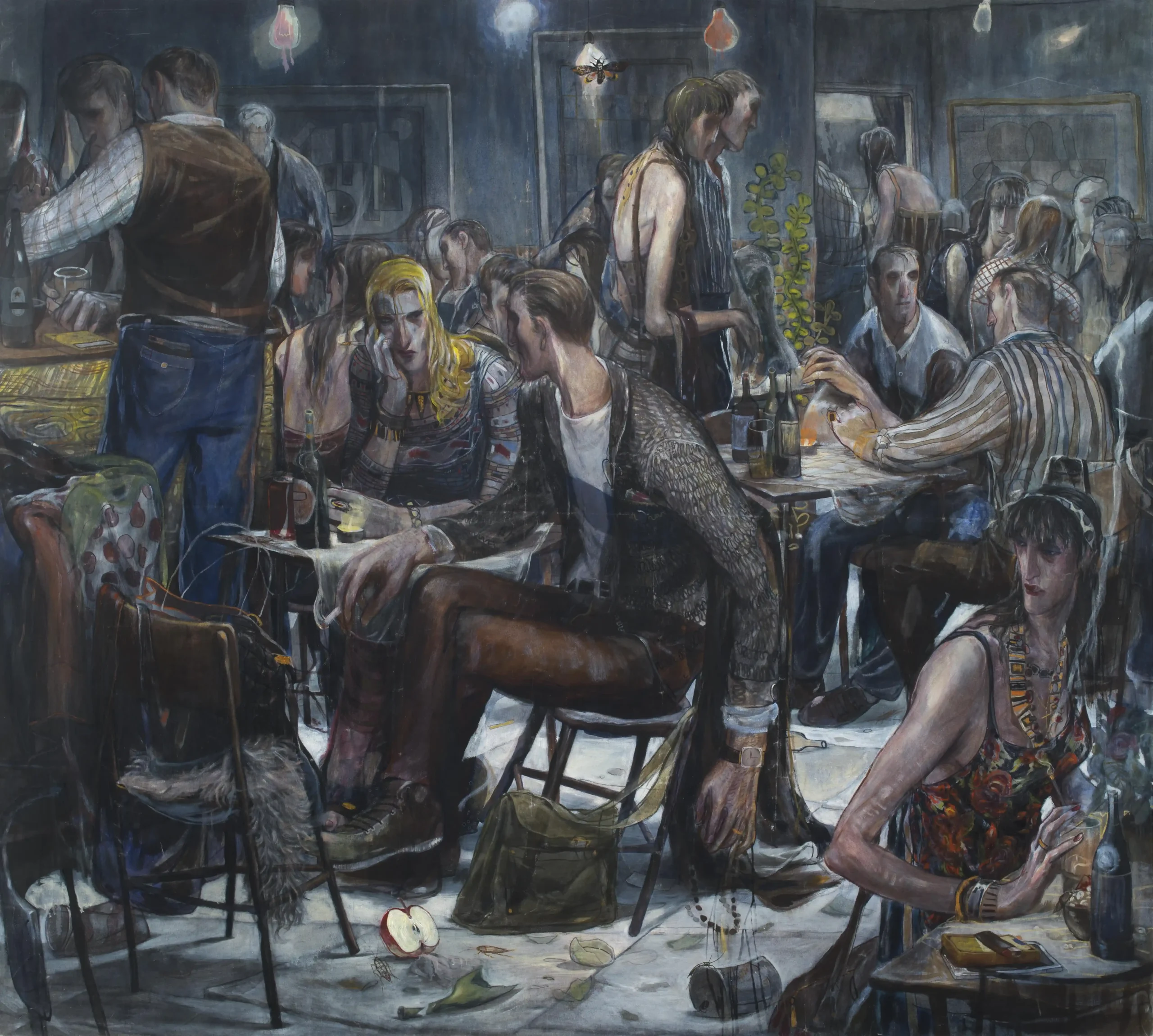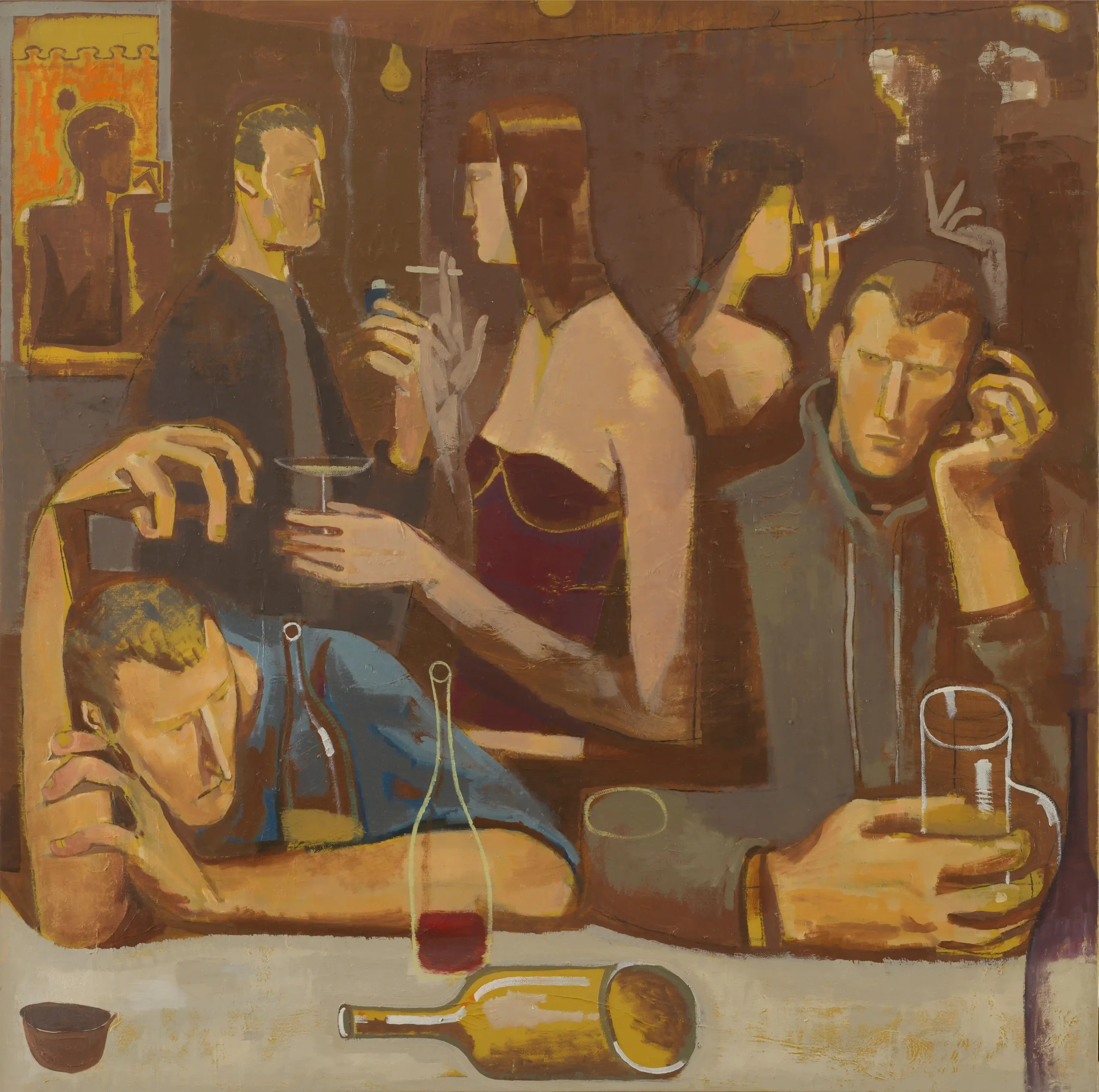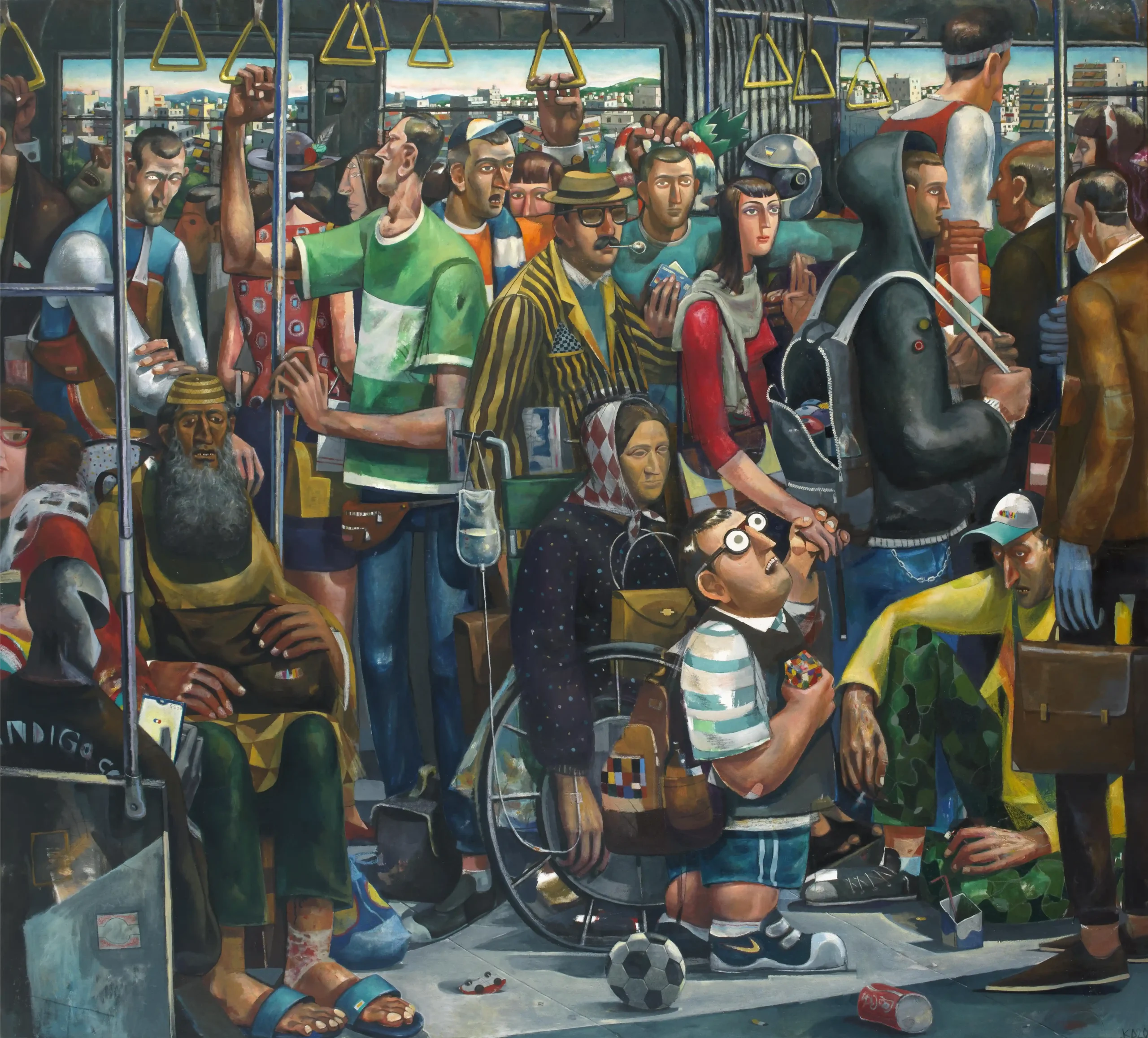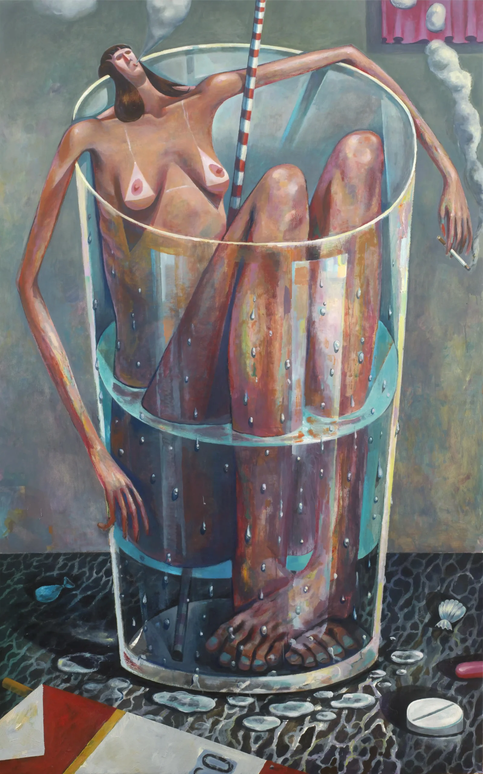 Kostis Damoulakis, lives and practices his art in Athens since graduating from the Faculty of Fine and Applied Arts of the Aristotle University of Thessaloniki in 2015. The visual language and subject matter of his works have been influenced by his early exposure in graffiti and tattoo art. His contemporary paintings, distinguished for their anthropocentric approach, examine urban city life and shed light to the invisible beauty of the daily mundane while incorporating symbols from different art movements, civilizations and chronological eras.